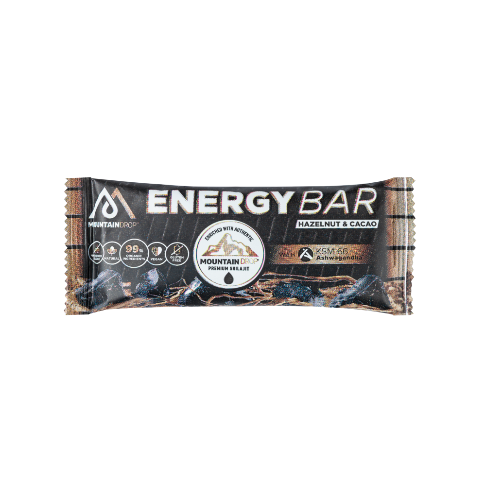 Mountaindrop® Energy Bar is the only energy bar available to contain two powerful natural biostimulants together: Ashwagandha KSM-66® for mental wellbeing and emotional balance and our premium Mountaindrop® Original Shilajit for natural energy for both body and mind.